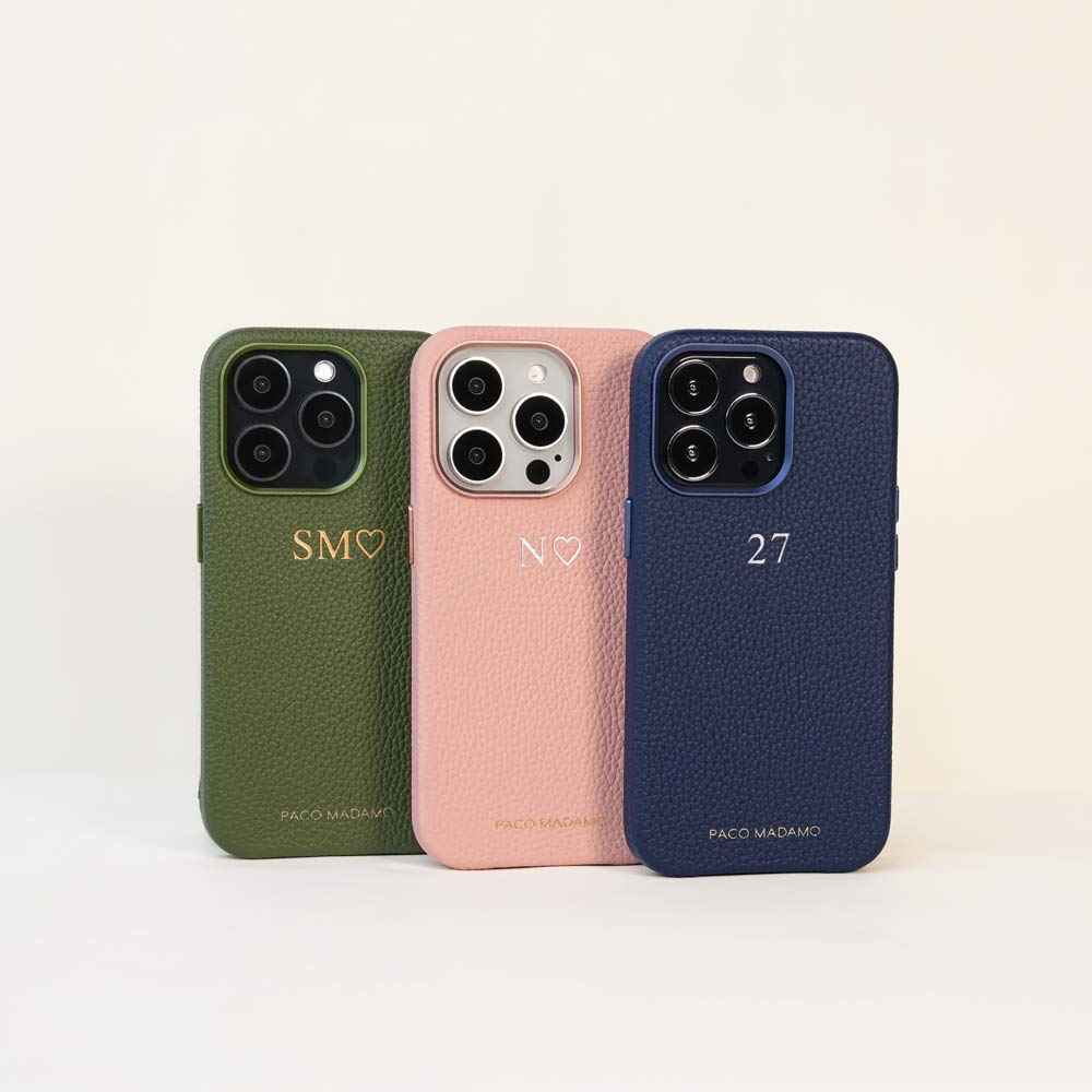 Our Vegan Pebble leather is enhanced by modern utilitarian details. Our cases are compact, functional, and versatile. The sleek shape allows for easy wear, offering superior protection for your phone. Crafted with precision, our newest feature includes an aluminum metal ring encircling the camera and buttons, adding a distinctive touch of sophistication to your device. As a special touch, add your initials with complimentary monogramming.
