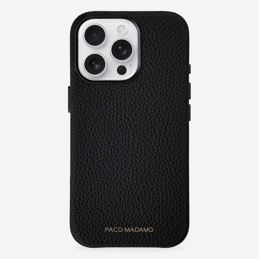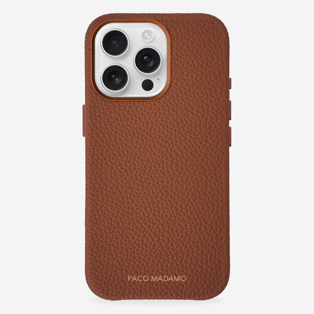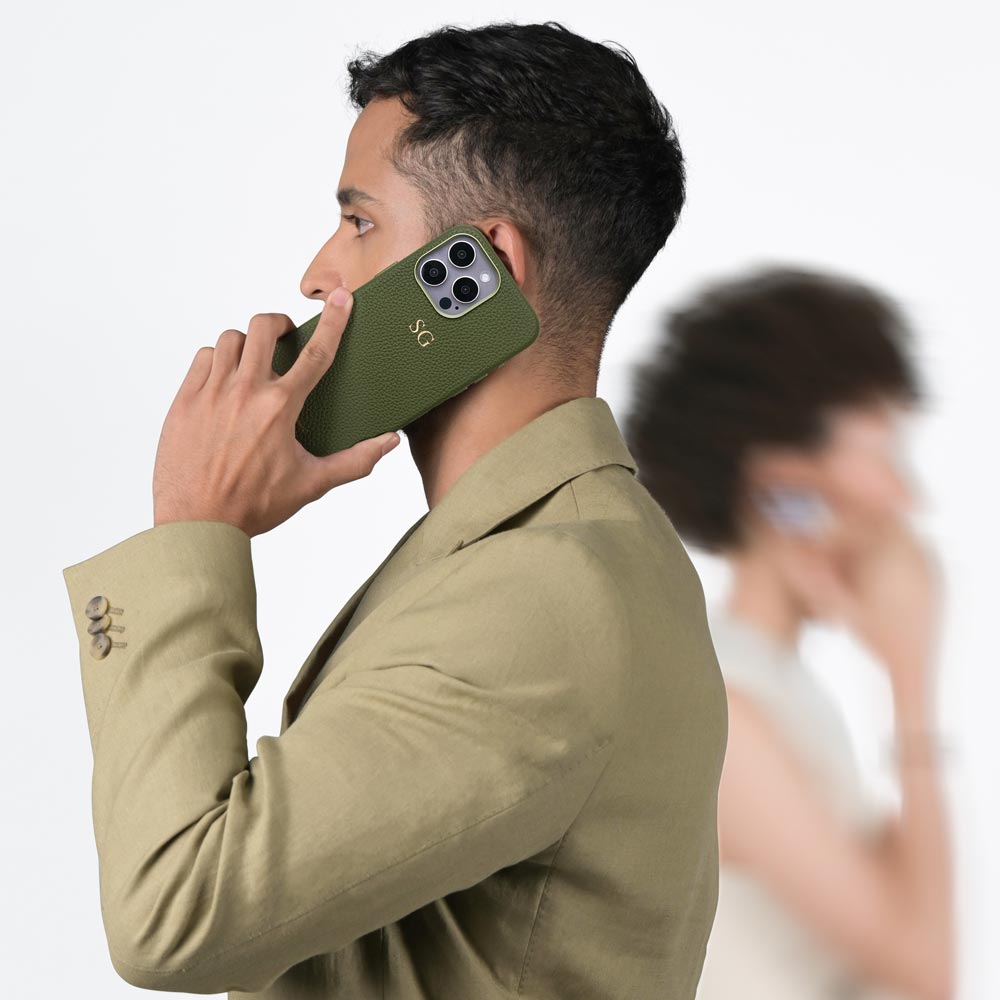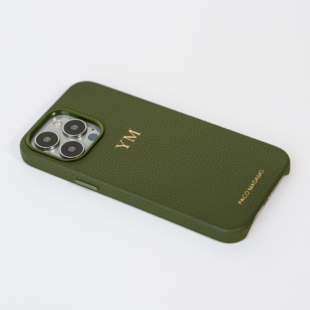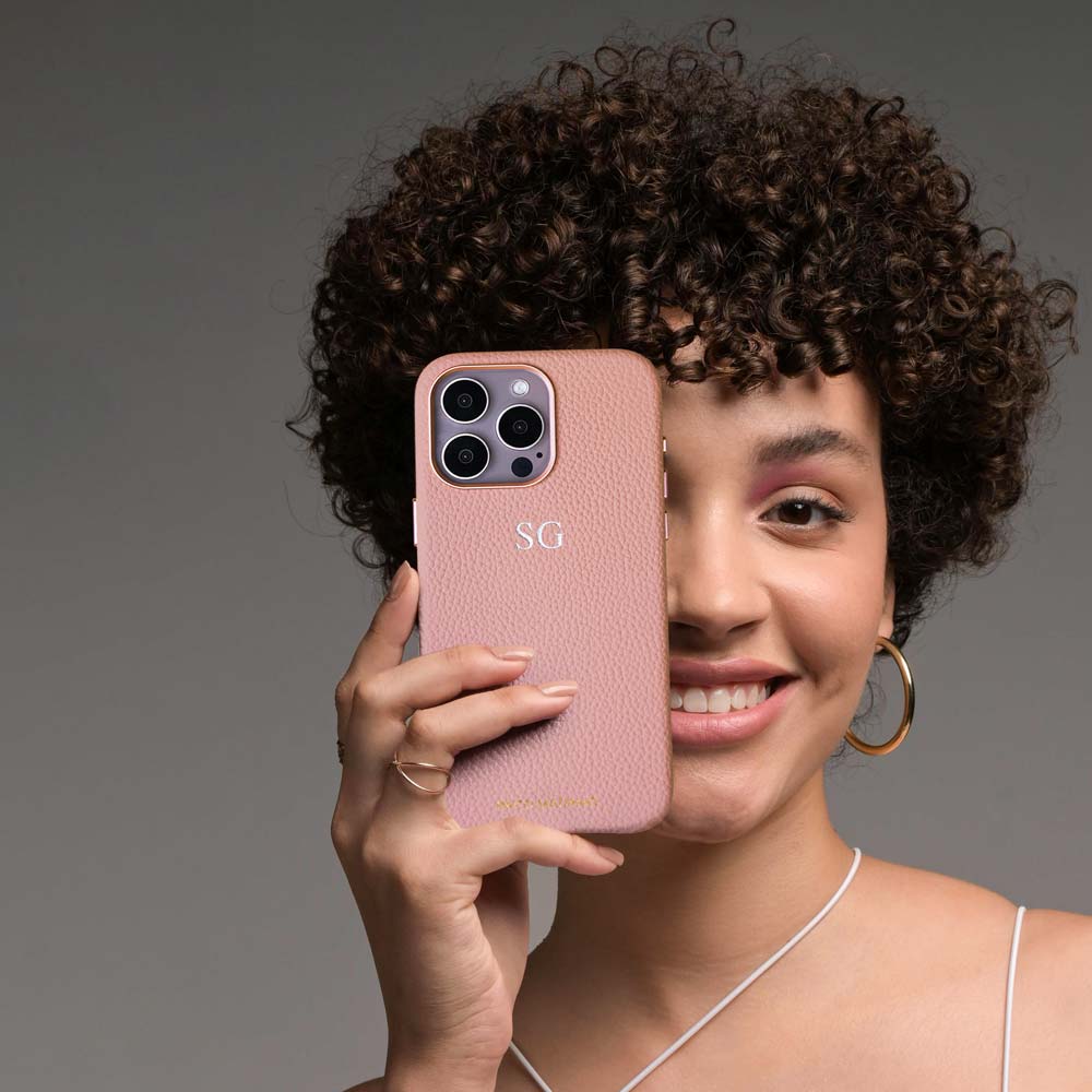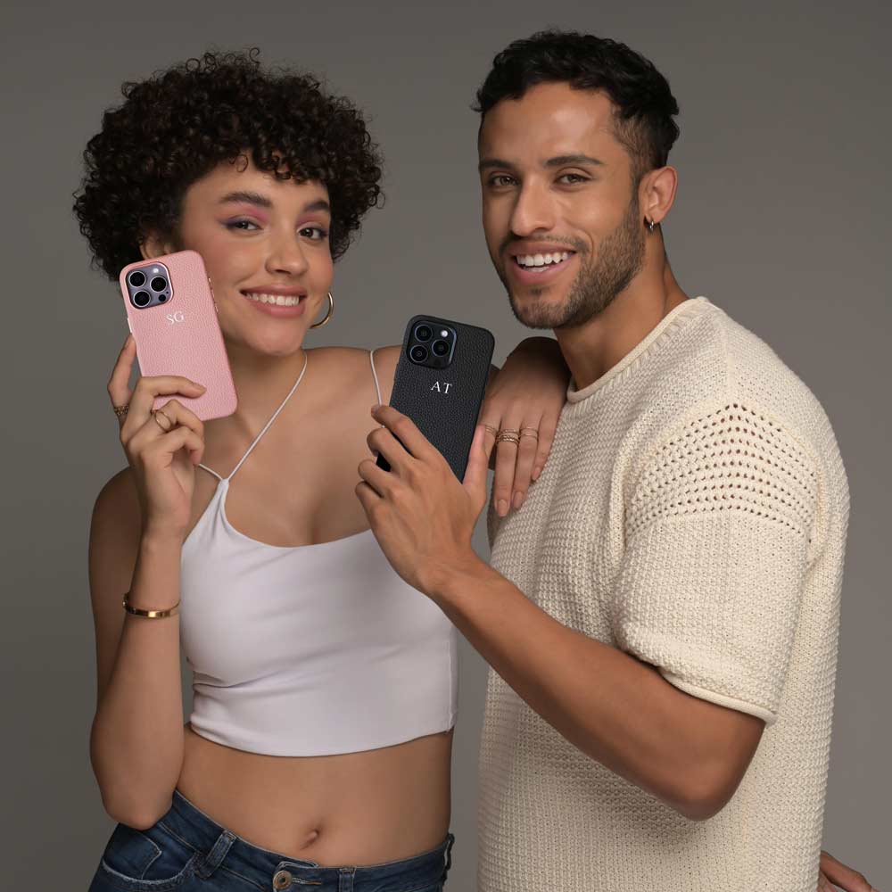 Our Vegan Pebble leather is enhanced by modern utilitarian details. Our cases are compact, functional, and versatile. The sleek shape allows for easy wear, offering superior protection for your phone. Crafted with precision, our newest feature includes an aluminum metal ring encircling the camera and buttons, adding a distinctive touch of sophistication to your device. As a special touch, add your initials with complimentary monogramming.
