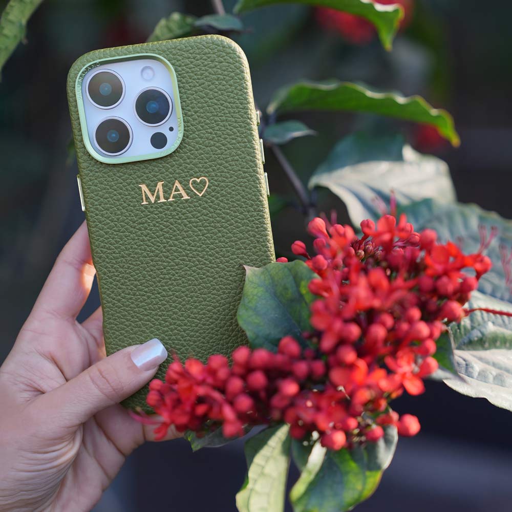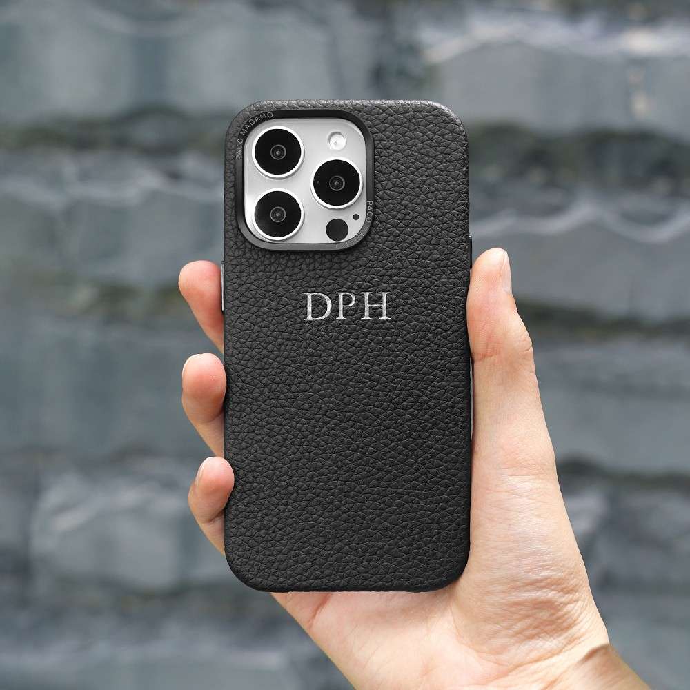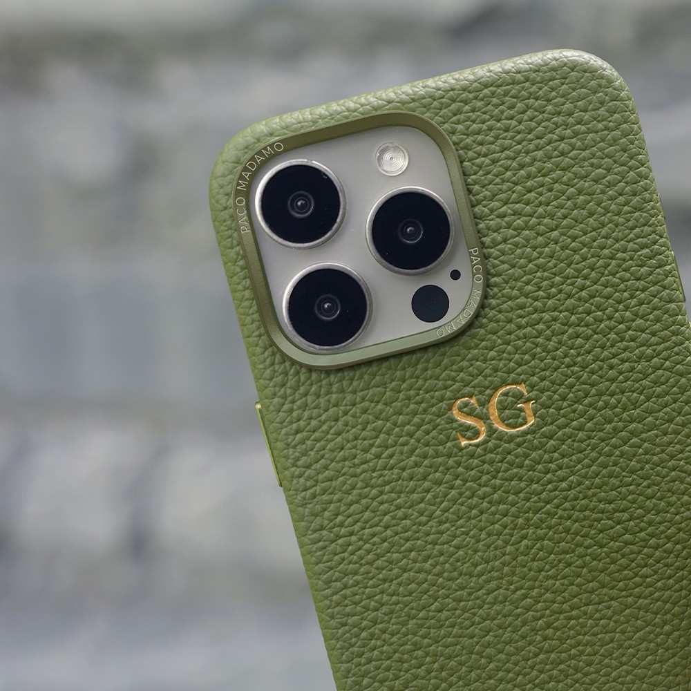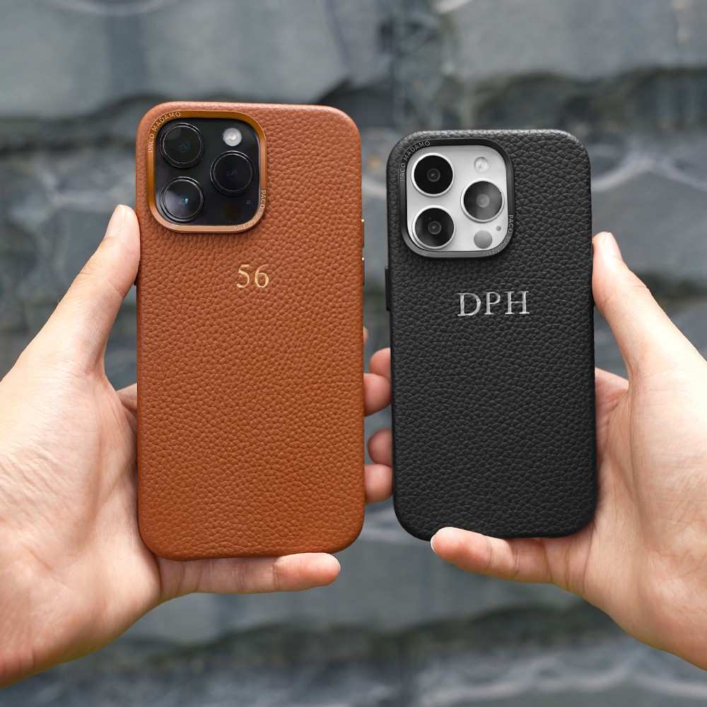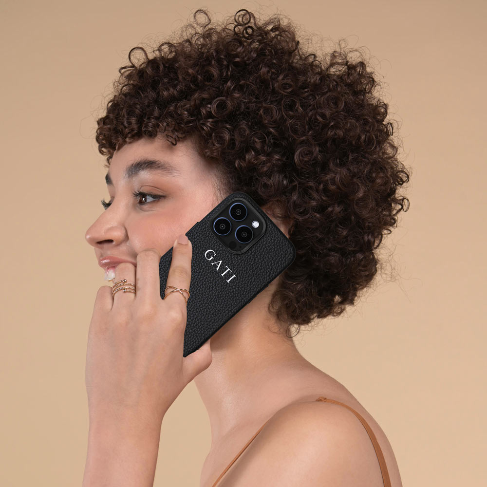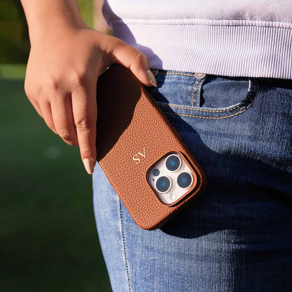 Our Vegan Pebble leather is enhanced by modern utilitarian details. Our cases are compact, functional, and versatile. The sleek shape allows for easy wear, offering superior protection for your phone. Crafted with precision, our newest feature includes an aluminum metal ring encircling the camera and buttons, adding a distinctive touch of sophistication to your device. As a special touch, add your initials with complimentary monogramming.