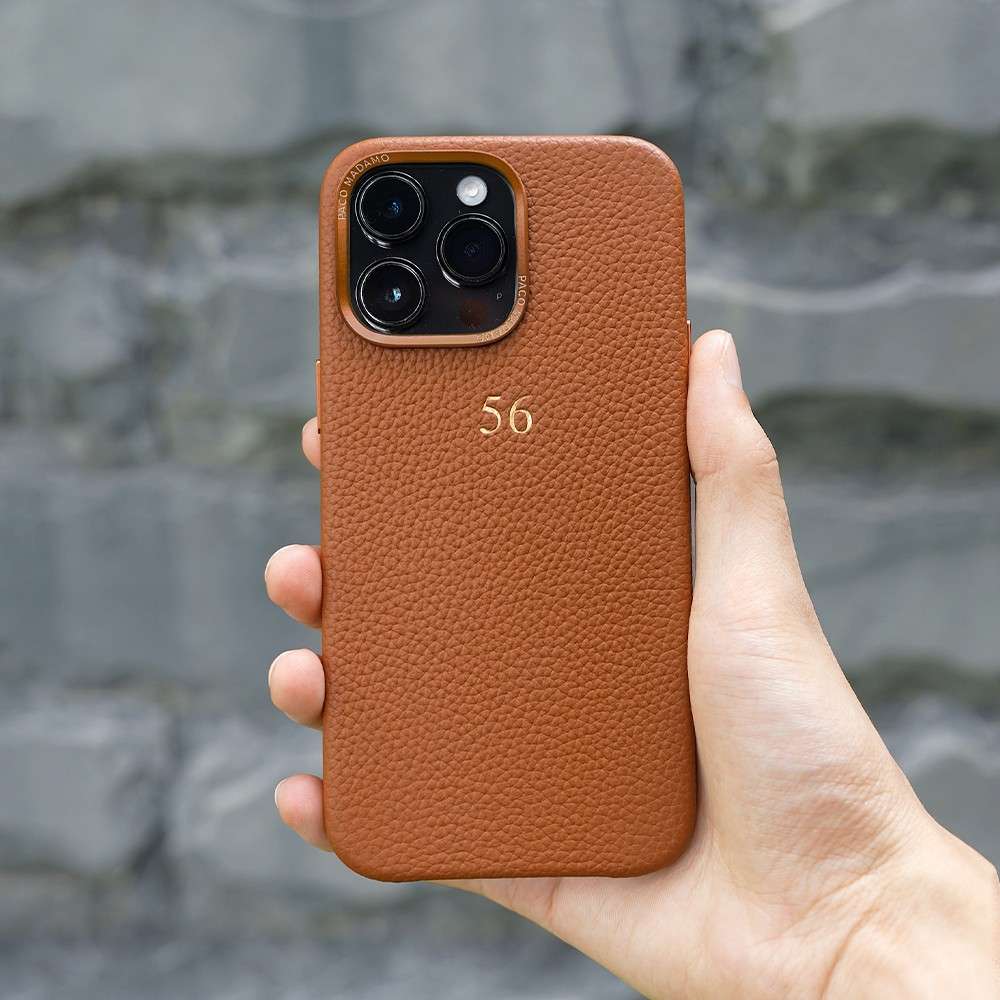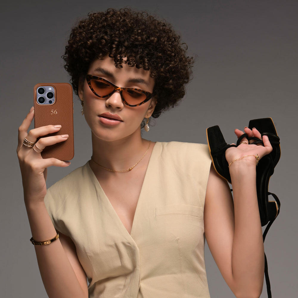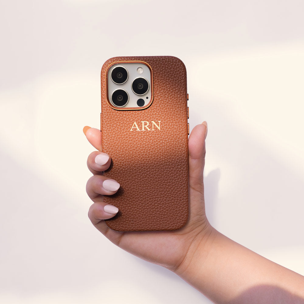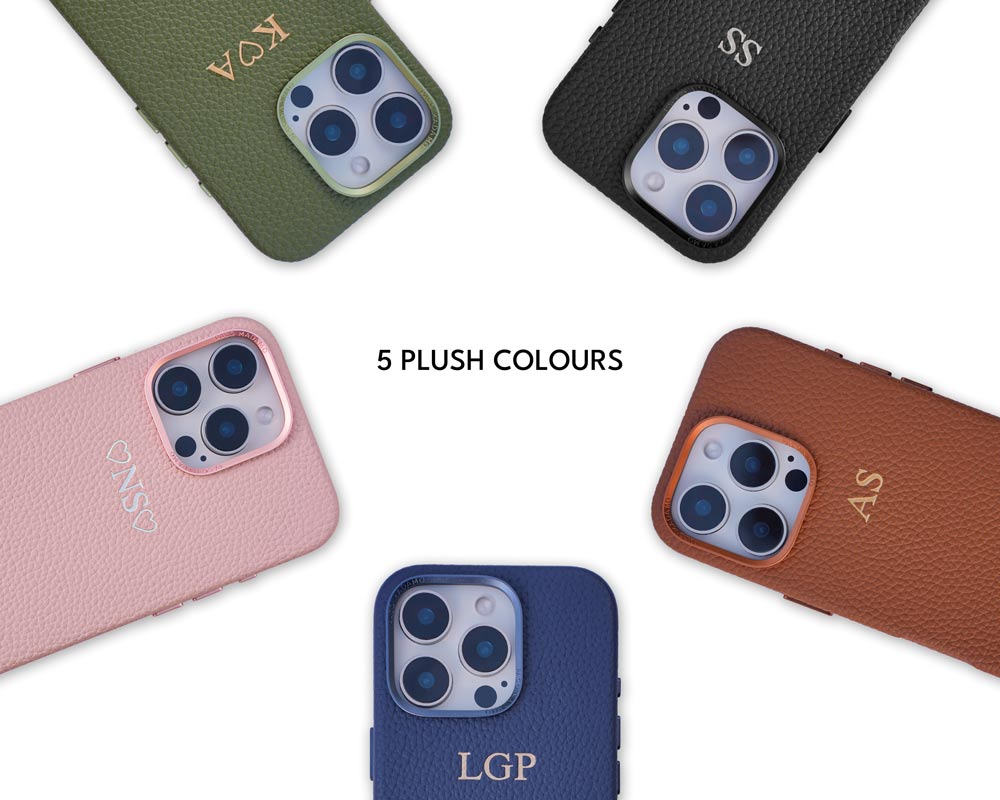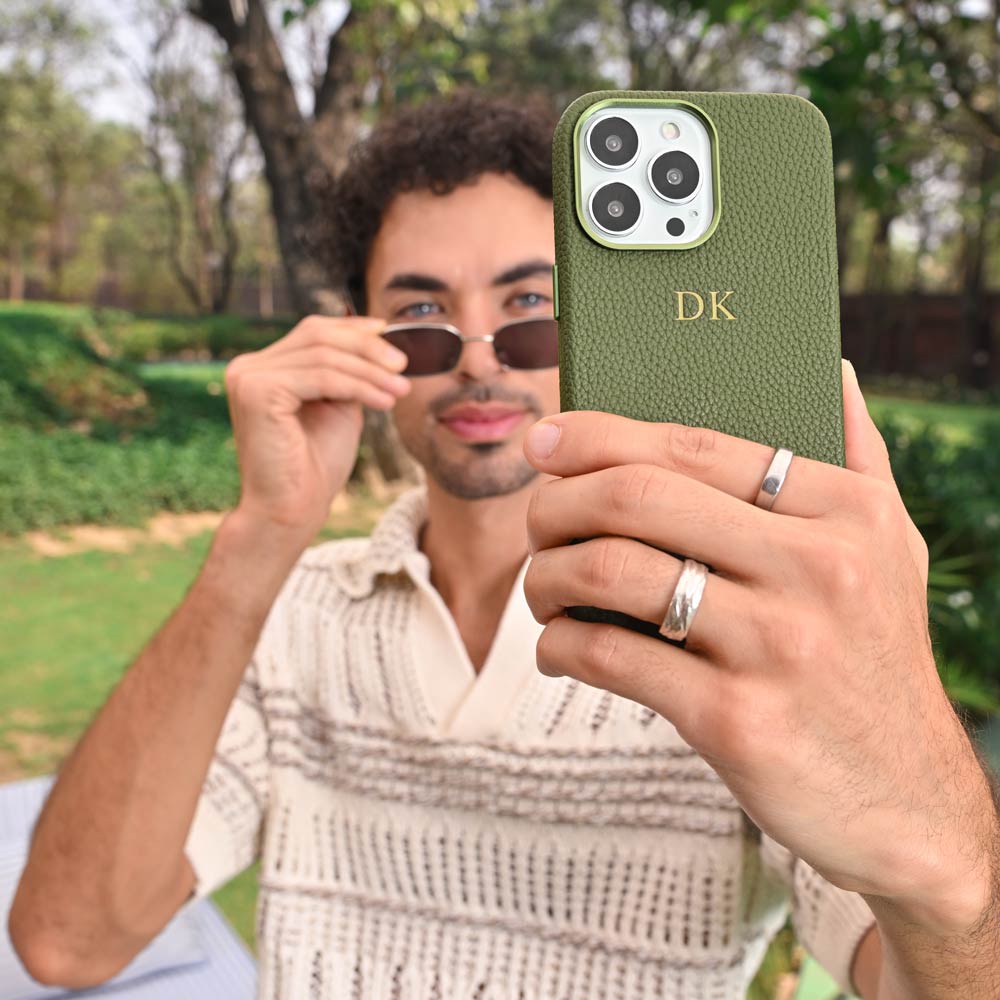 Our Vegan Pebble leather is enhanced by modern utilitarian details. Our cases are compact, functional, and versatile. The sleek shape allows for easy wear, offering superior protection for your phone. Crafted with precision, our newest feature includes an aluminum metal ring encircling the camera and buttons, adding a distinctive touch of sophistication to your device. As a special touch, add your initials with complimentary monogramming.