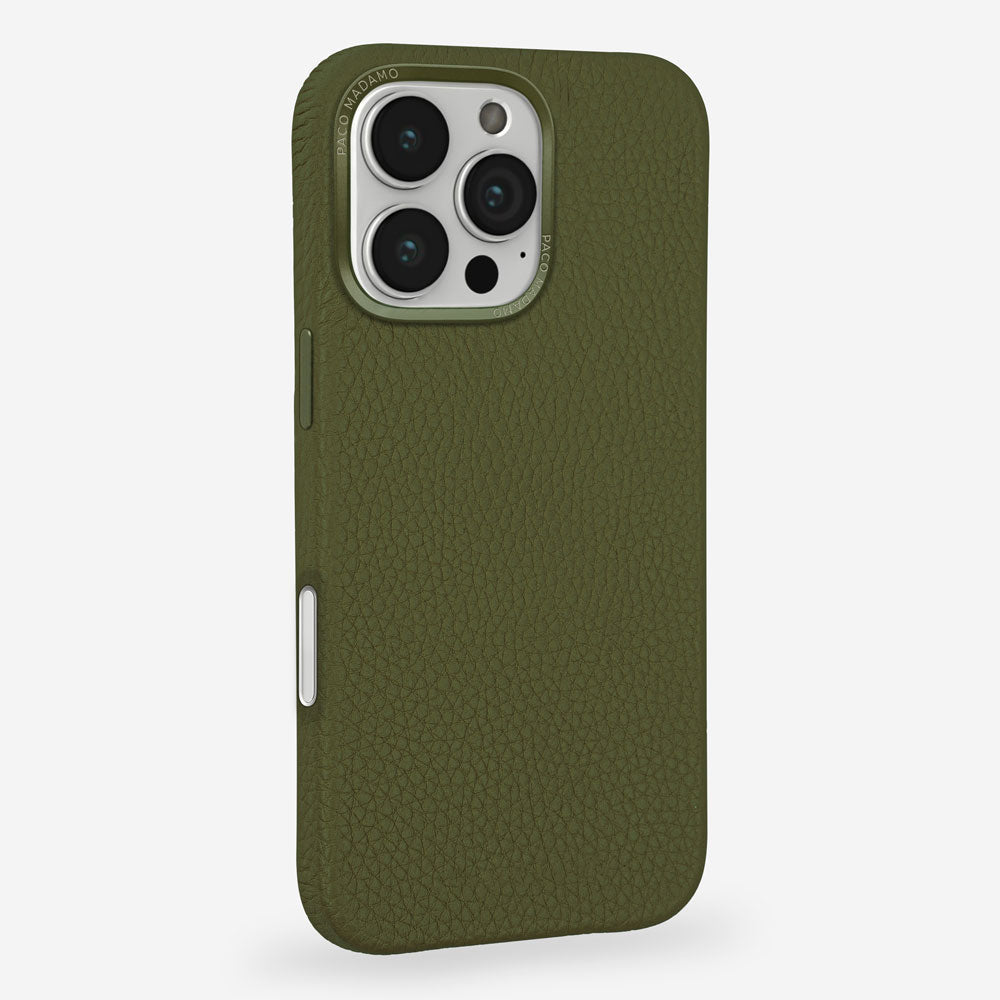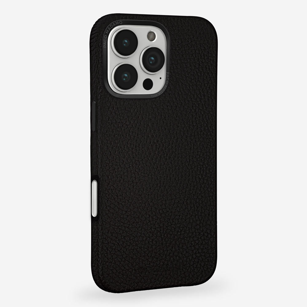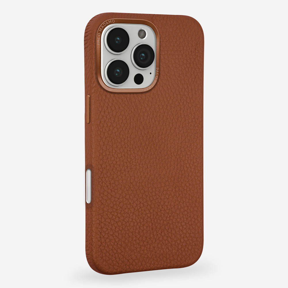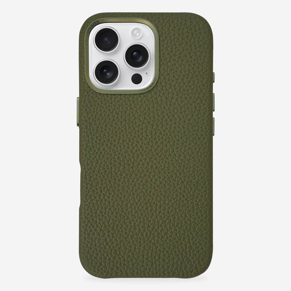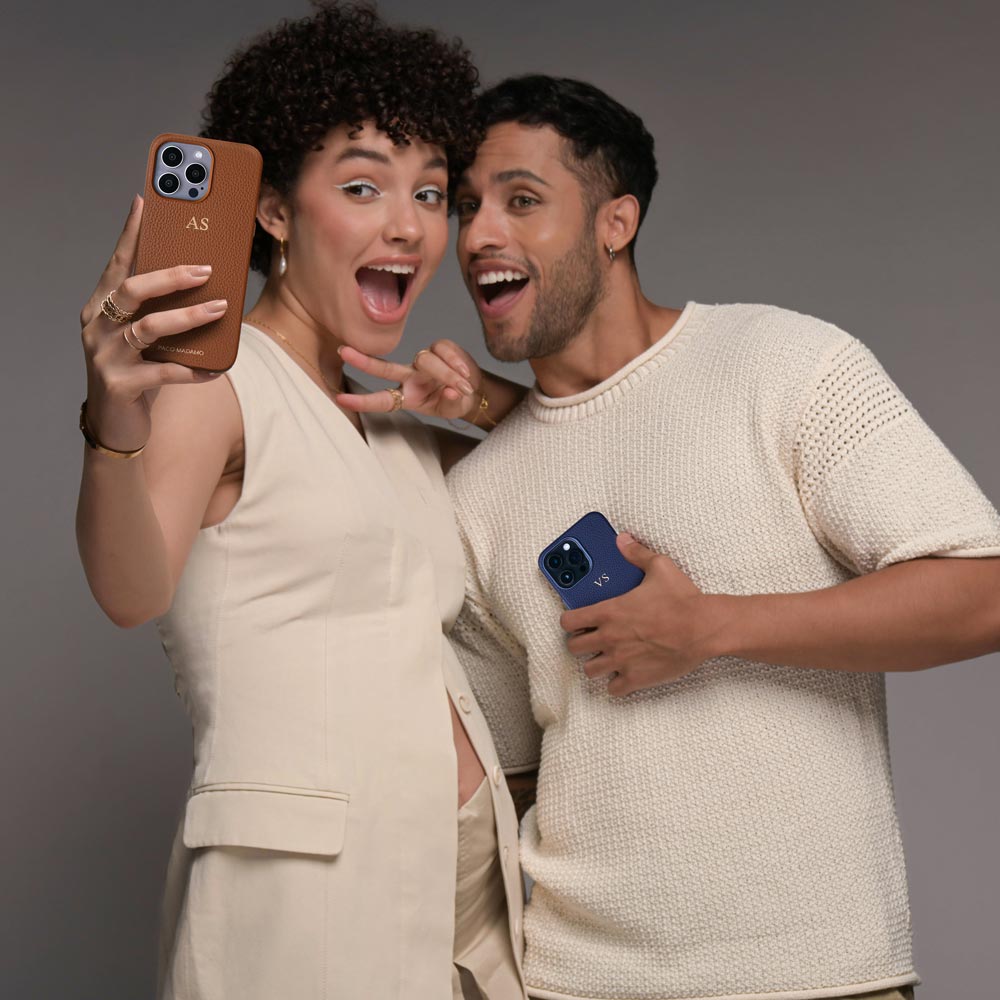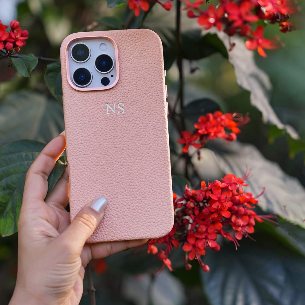 Our Vegan Pebble leather is enhanced by modern utilitarian details. Our cases are compact, functional, and versatile. The sleek shape allows for easy wear, offering superior protection for your phone. Crafted with precision, our newest feature includes an aluminum metal ring encircling the camera and buttons, adding a distinctive touch of sophistication to your device. As a special touch, add your initials with complimentary monogramming.